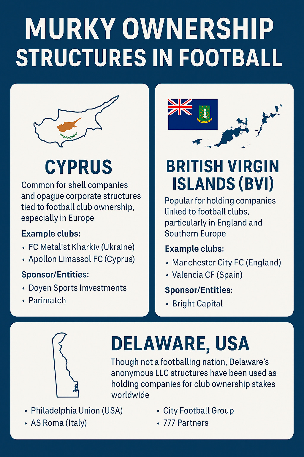 Cyprus: Known for shell companies tied to European clubs, leveraging its flexible tax regime.
