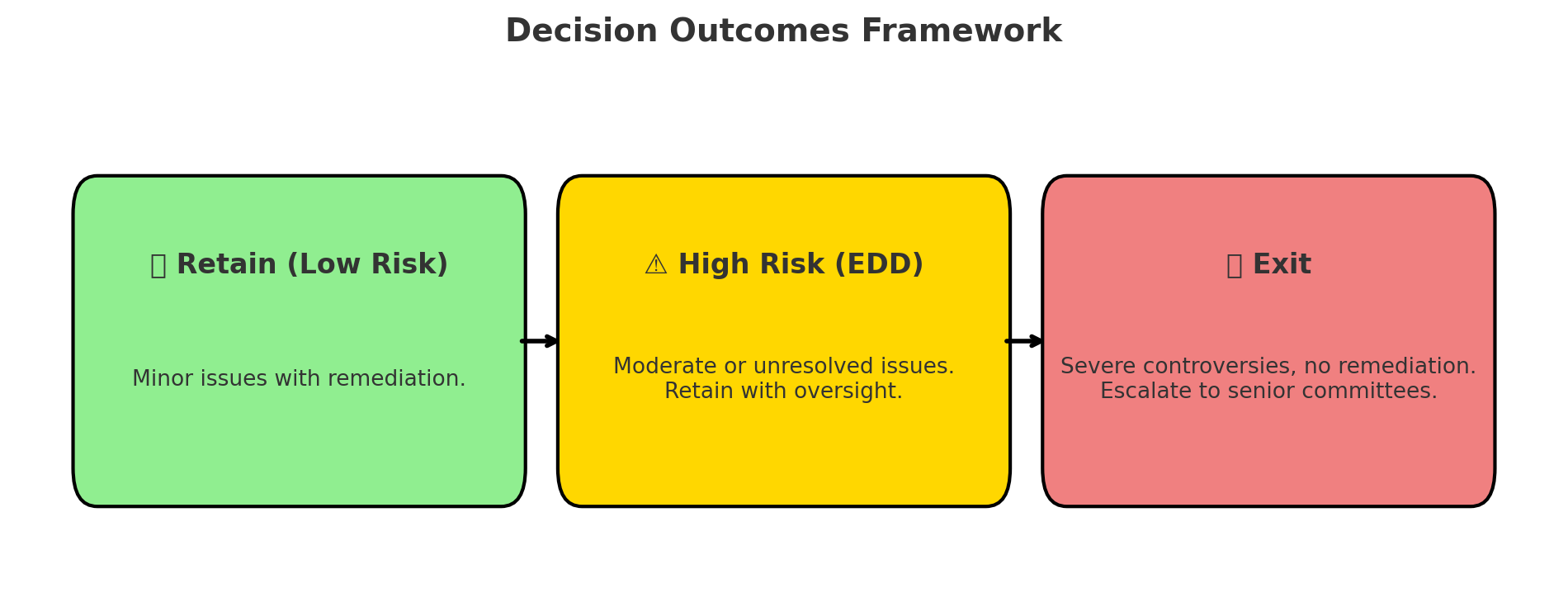 β’ High Risk (EDD): Moderate or unresolved issues, retain with oversight.