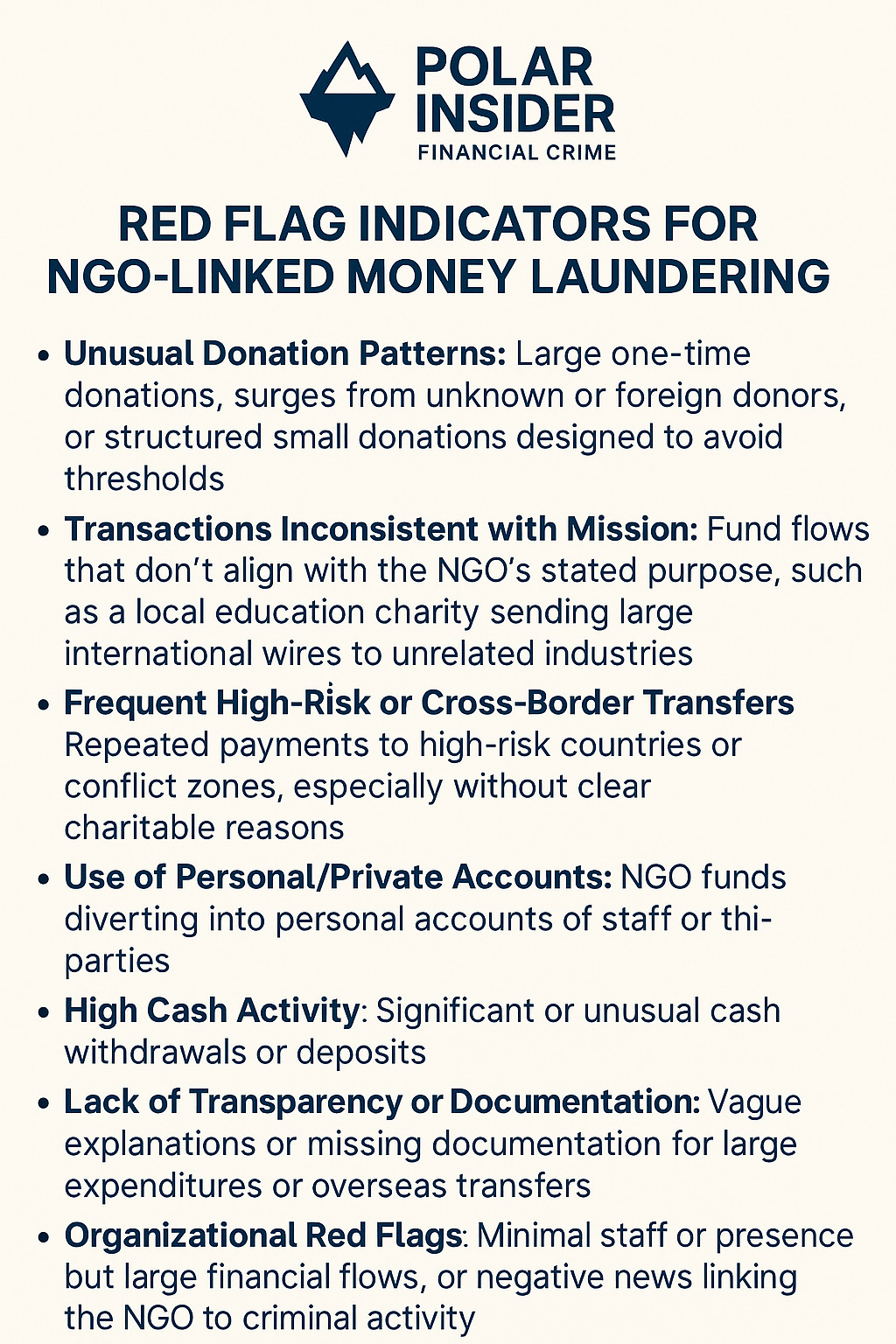 Welcome to this weekβs edition of Polar Insider. In this issue, weβre diving into a troubling topic: how nonprofit organizations and charities, often trusted pillars of society, can be exploited by criminals to launder money or finance terrorism. While these organizations are designed to do good, some have been misused as convenient fronts for illicit activities. This issue is especially relevant for compliance officers working with NGOs, faith-based charities, or cross-border remittances.
