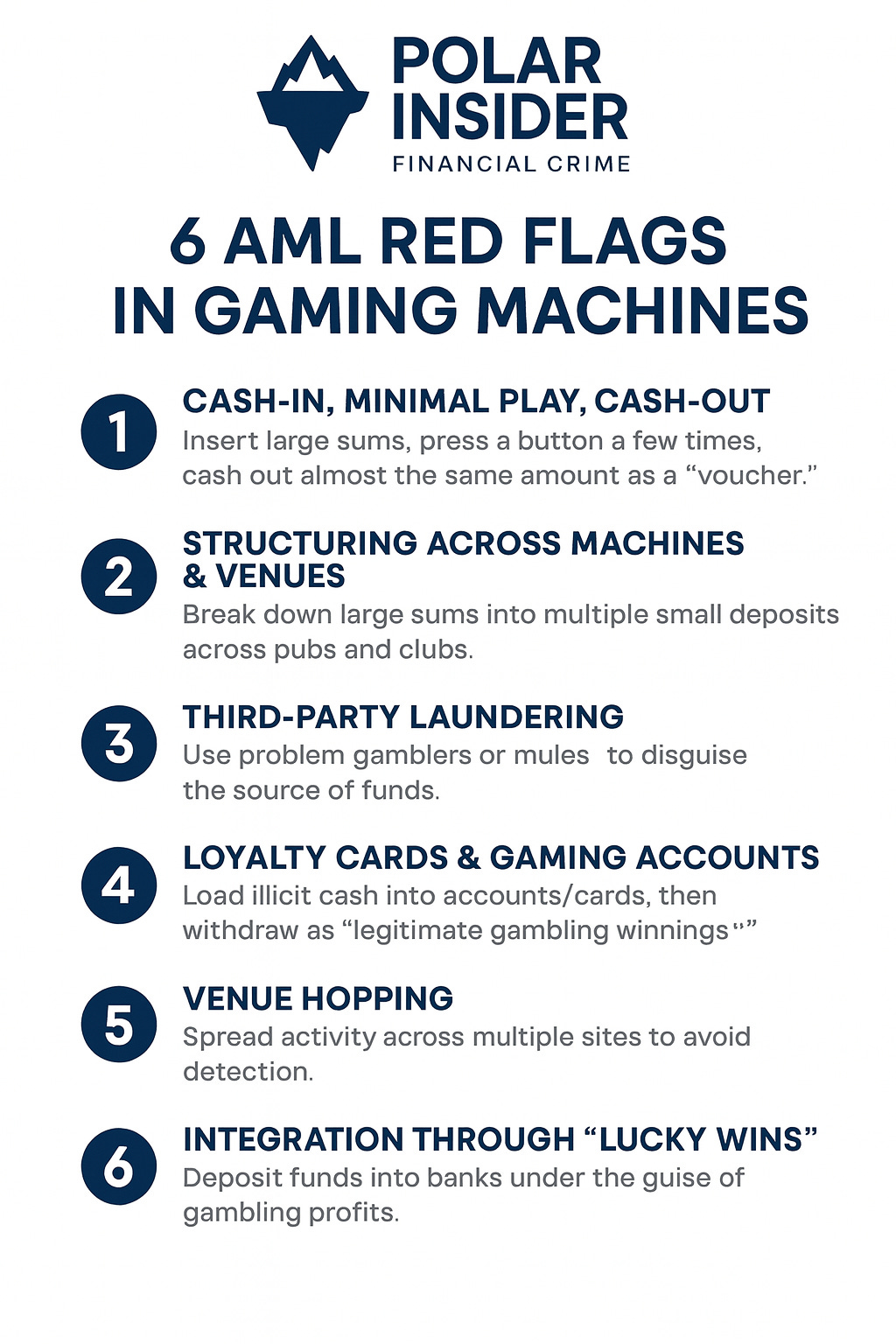 Welcome to this week’s edition of Polar Insider. This issue explores how criminals launder illicit funds through pokies (slot machines) and casinos. Despite growing regulatory attention, pokies remain a persistent weak point for financial crime, offering anonymity and ease of cash conversion.